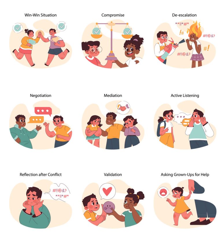 Learning conflict resolution skills from a young age can improve children's social interactions and academic performance.
